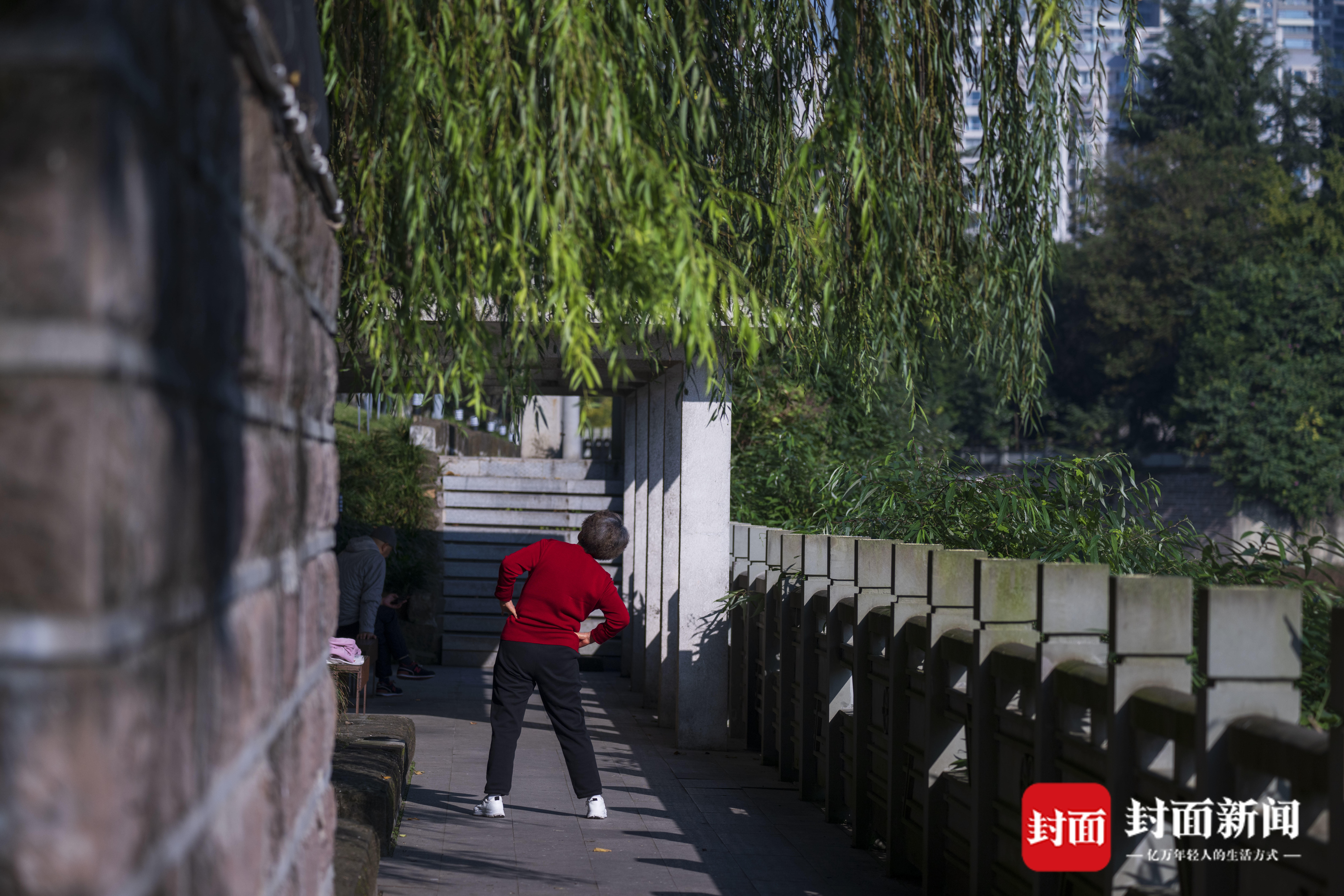 11月20日,成皆锦江边,市民在阳光下晨练。